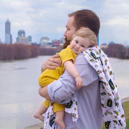 Indiana Baby Muslin Swaddle Blanket and Burp Cloth/Bib | Gift Set