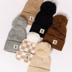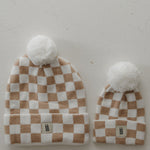 ff Knit Pom Top Beanie | Tan Checkerboard