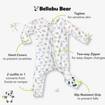 Convertible Comfort: Innovative convertible footies ease the transition from night to day, ensuring adaptability to varying temperatures, and extending the lifespan of the garment (included in ALL onesies).