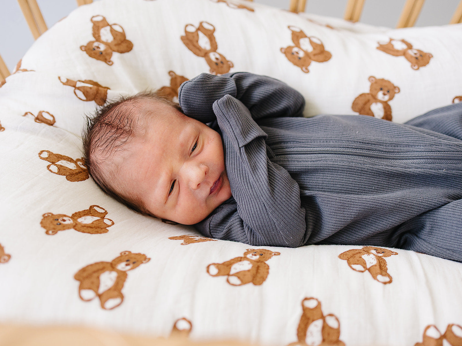 Charcoal Organic Cotton Ribbed Zipper | Milk & Baby