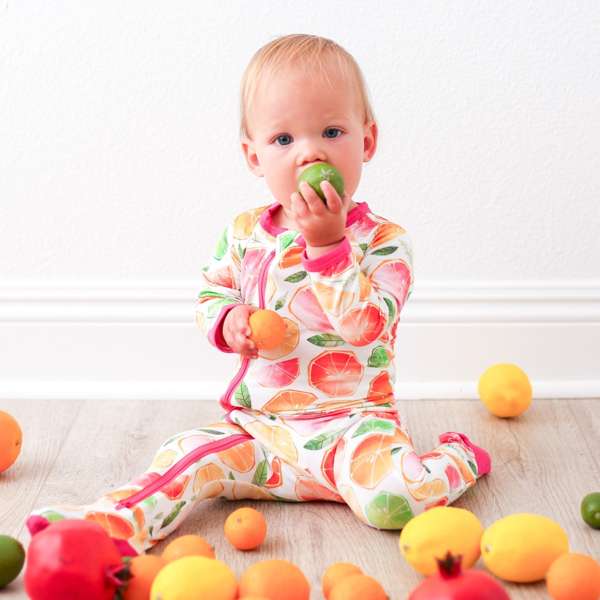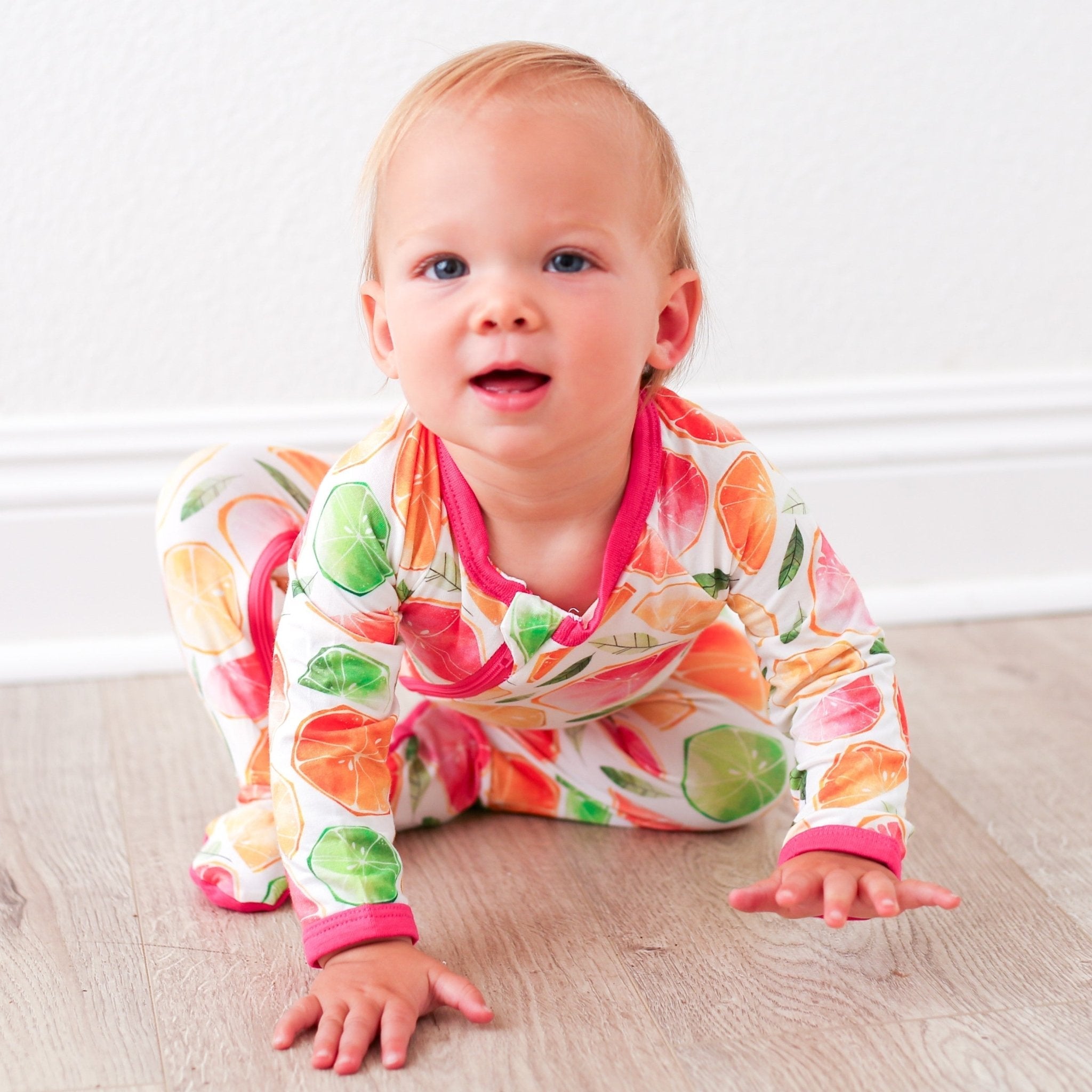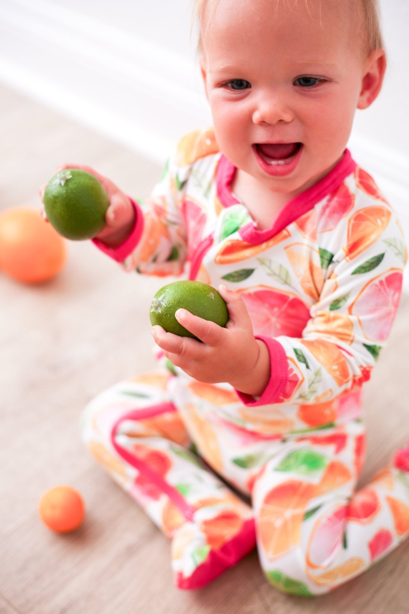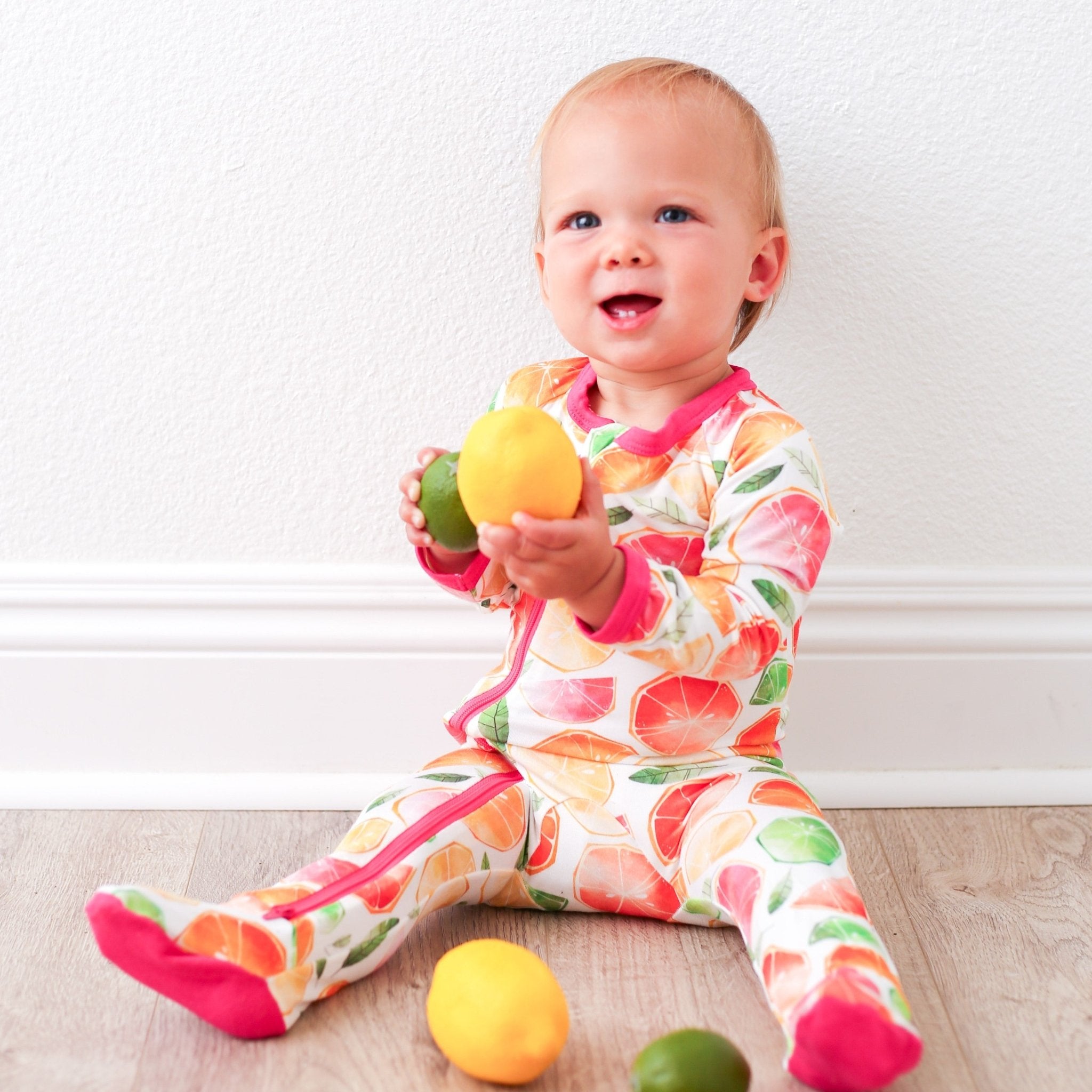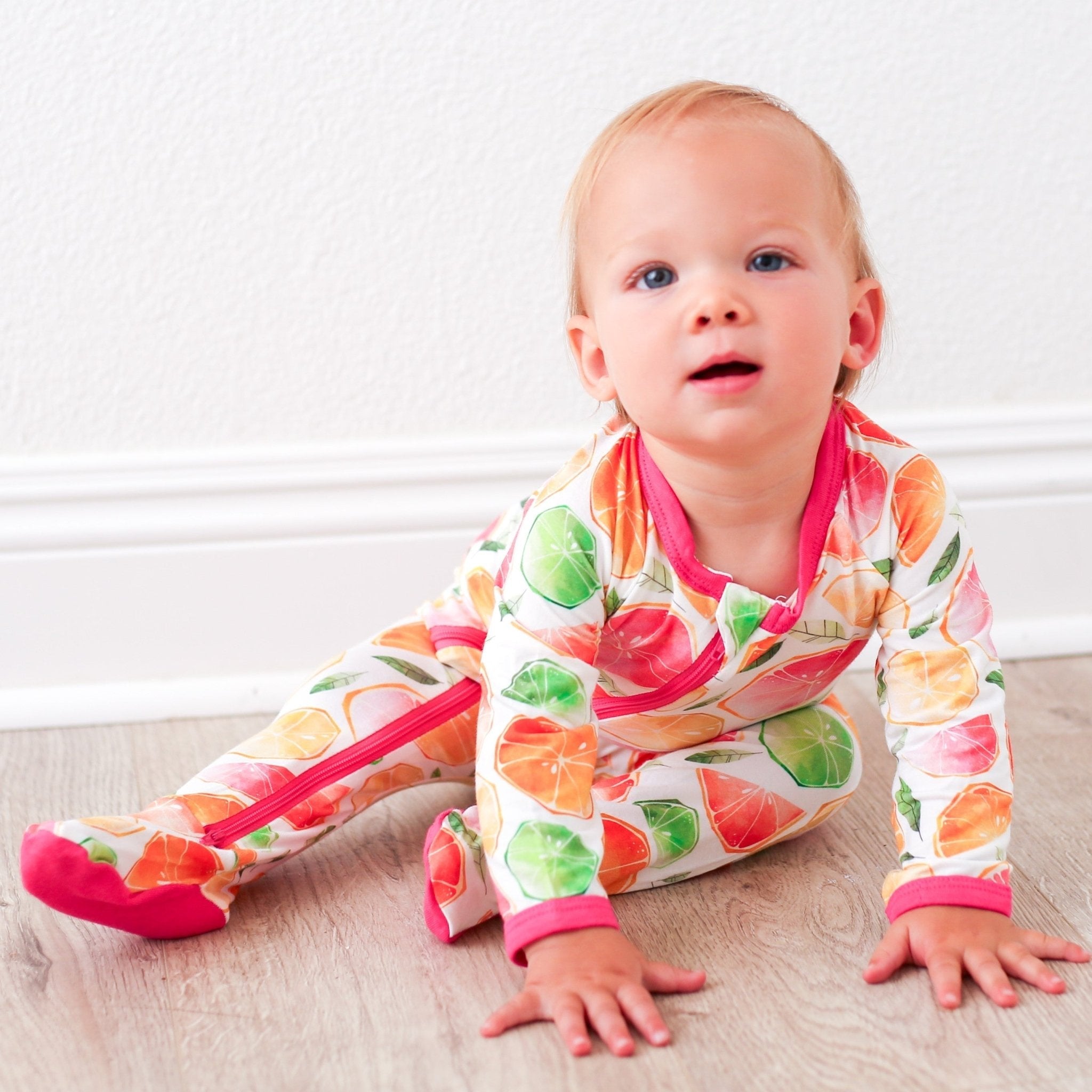 These amazingly soft footies will keep little one's super cozy and snuggly from top to bottom! These soft as a baby's bottom footies are perfect for year round lounging. Zipper from neckline to those adorable little chubby feet make for easy breezy changing. We also made sure to add built in fold over hand mittens on small sizes to prevent scratching and worry free zip tabs to keep zippers away from little chins.