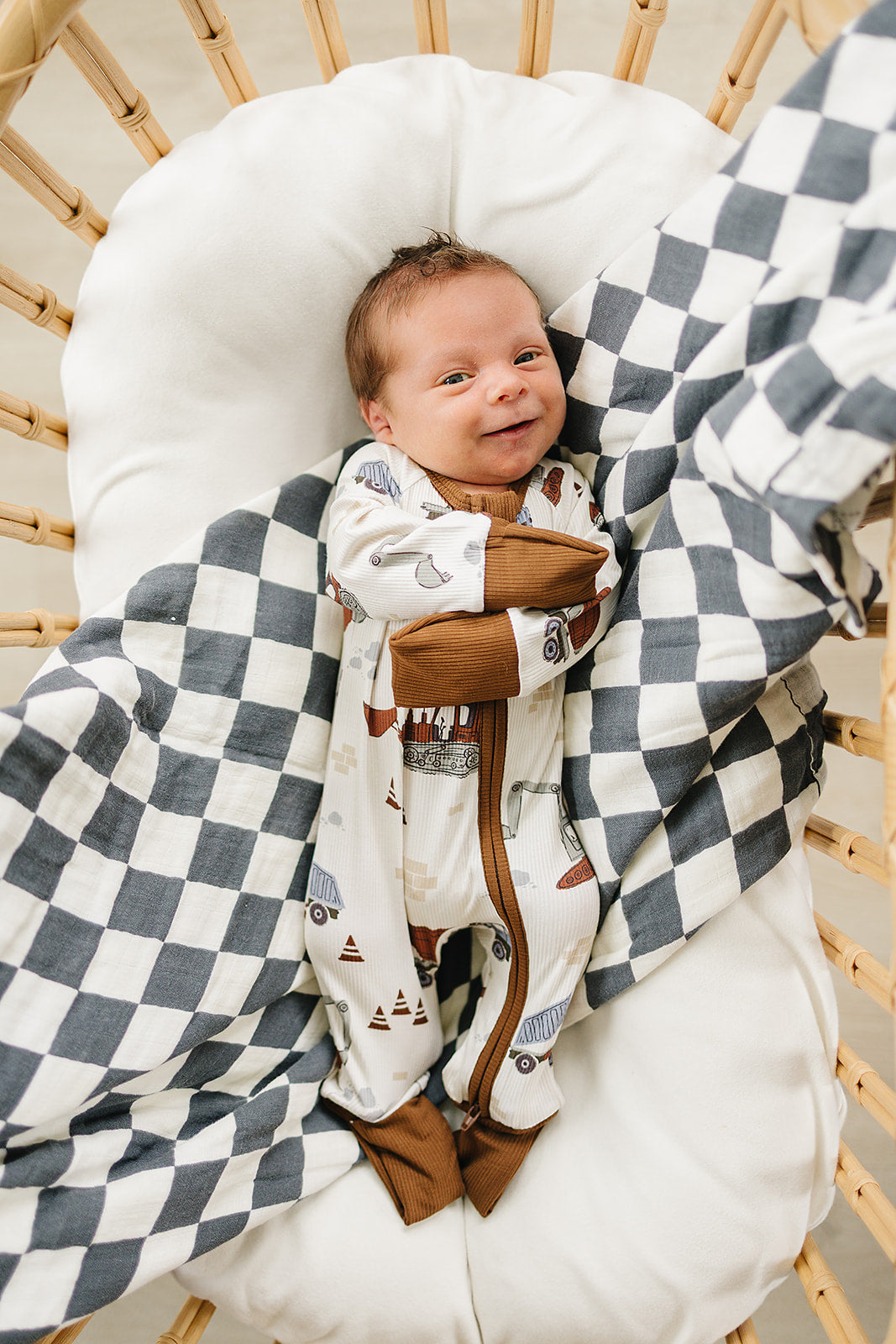 Construction Trucks Ribbed Bamboo Zipper