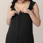 A labor & delivery gown that looks as good as it feels! Perfect for those first photos with your new little love, the ultra-feminine Ruffle Strap Labor & Delivery Gown has openings that extend the full length of both the front and the back. The front snap opening allows for fetal monitoring, ultrasounds, C-section incision inspections, and skin-to-skin contact, while the back Velcro opening allows for easy epidural placement. The snaps at the adorable ruffle straps make for quick breastfeeding access, and the large pockets are great for your phone and other essentials.