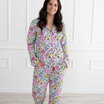 Bring a little rock ’n’ roll to your bedtime routine with our Sugar on Me Women’s Button Down PJ Set, designed in collaboration with the legendary Def Leppard. Featuring bold, colorful artwork inspired by one of the band’s most iconic hits, this set strikes the perfect balance between cozy comfort and rocker edge. Crafted from our buttery-soft bamboo lyocell blend, these PJs are breathable, stretchy, and silky smooth—keeping you comfy all night long (and stylish enough for lounging all day).