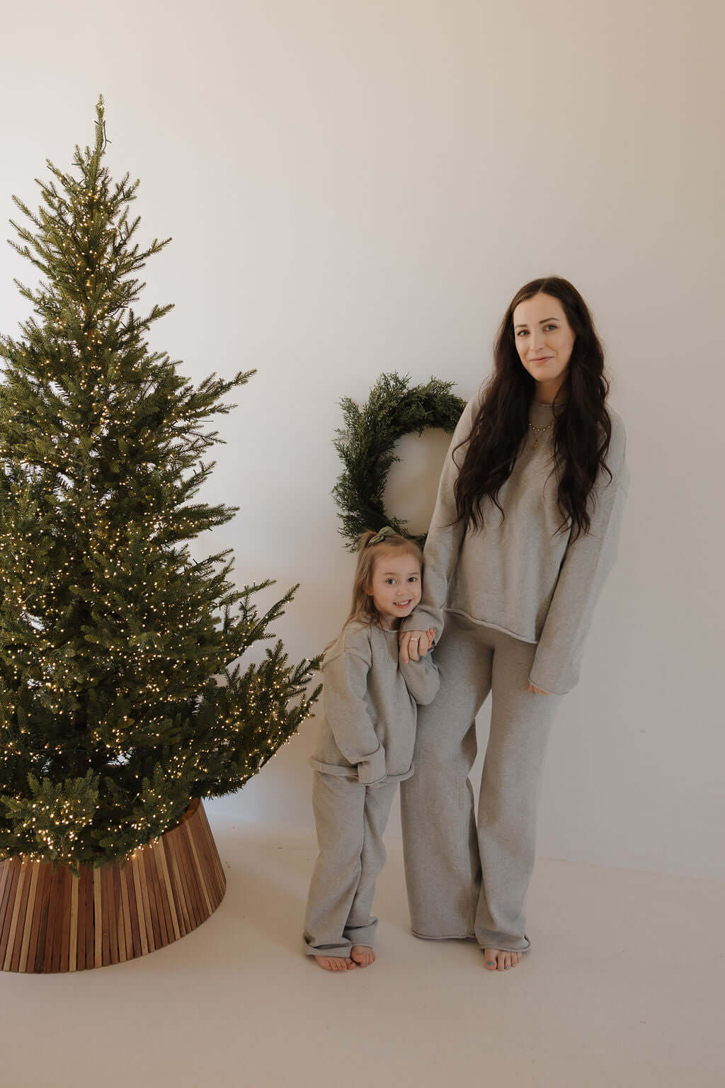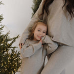Introducing our new knit set, the perfect addition to your wardrobe! This cozy ensemble features an oversized top designed for ultimate comfort, complemented by a workable drawstring that allows for adjustable styling. Don't forget to look at the matching set available in adult sizes.