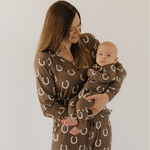 Everyone's favorite bamboo women's pajamas, featuring a long-sleeve top with three buttons and a slight flared pant. Be sure to look at our matching baby and toddler pajamas in this charming print! *These pajamas feature snaps down the front for easy accessibility for breastfeeding moms and elastic waistbands ensure max comfortability*