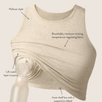 We heard you. Meet the pumping version of the Nursing Longline Bra Top you’ve been obsessed with – proof that pumping clothes can be comfortable, functional, and totally adorable. This hands-free pumping bra top features a flattering fit, ultra-soft bamboo fabric, and built-in pumping functionality. Perfect on its own or layered and great for lounging, doing yoga, or running errands, this seamless bra top keeps you comfy while making pumping convenient. No need to change bras or clip and unclip – just lift the outer layer, and slide your flanges through the openings in the inner layer. A pumping bra top that gets the job done while looking great.