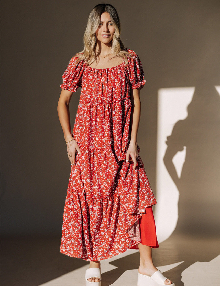 The Bella Maxi Dress, a stunning addition to your wardrobe. The versatile design allows you to wear it on or off the shoulder, and its relaxed fit makes it perfect for casual or maternity wear. Dress it up or wear it casually, experience the effortless elegance and flowy movement of this gorgeous maxi dress.