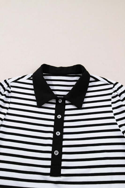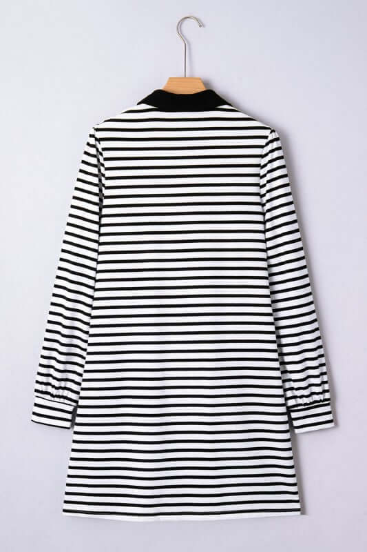 Stripe Collared Pocketed Long Sleeve T-Shirt Dress