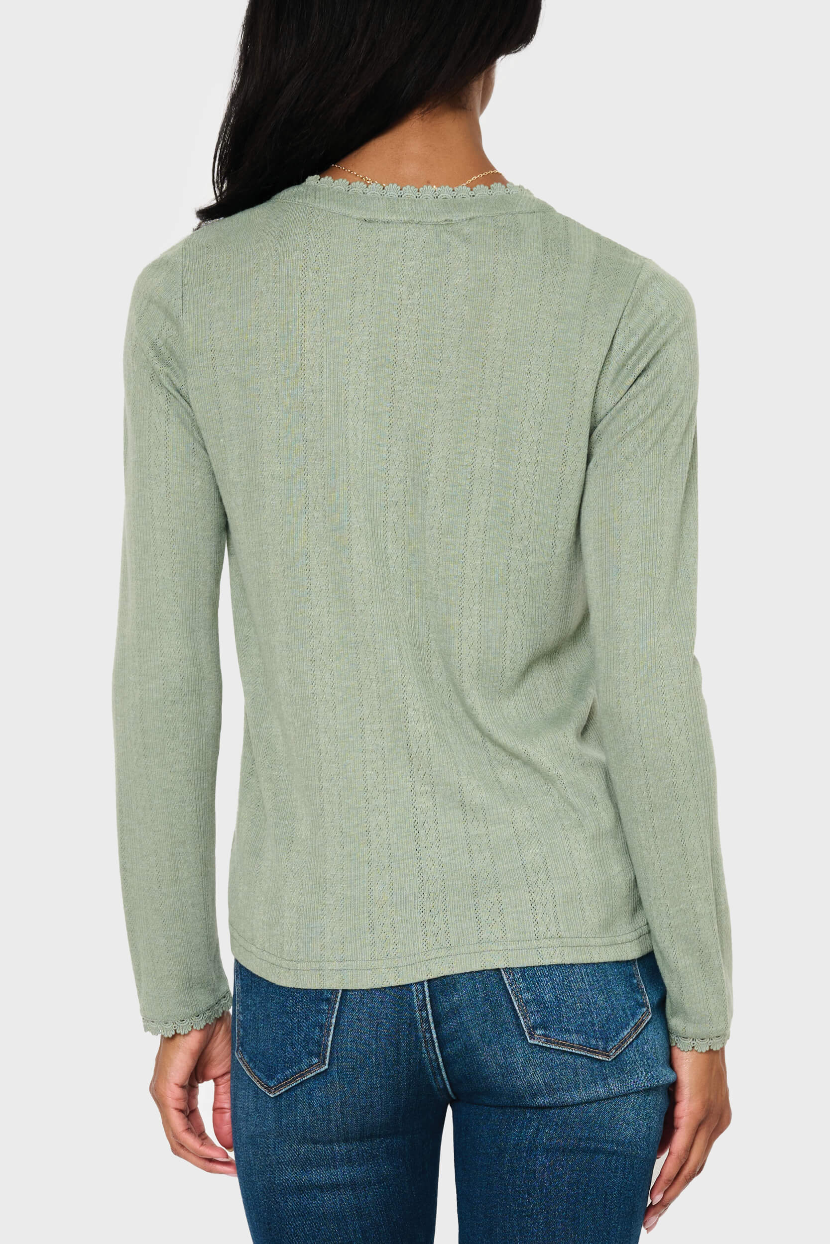 Ava Crochet Trim Pointelle Henley Top