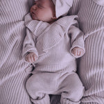 The headband of this garment is shipped untied in order to allow you to adjust your bow to your baby's head. See our video tutorial on how to tie the ultimate knotted bow.