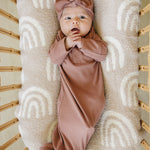 Dusty Rose Organic Cotton Ribbed Knot Gown | Milk & Baby