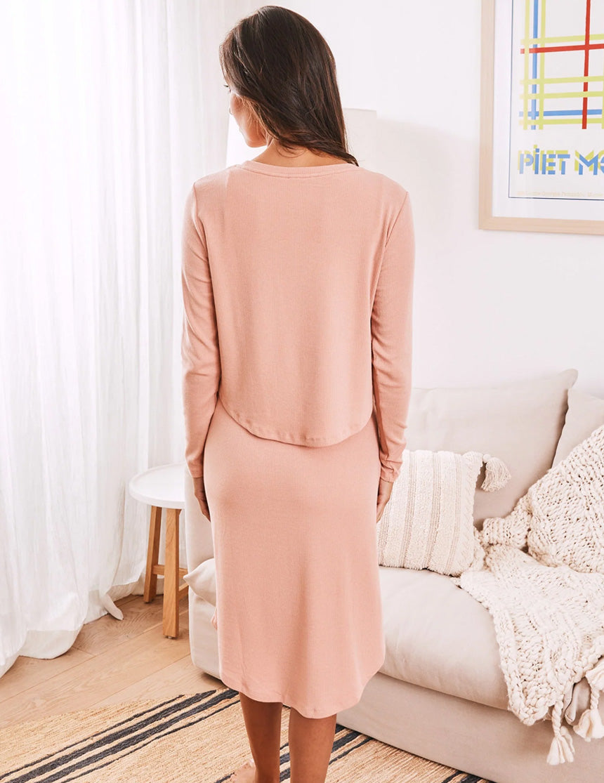 Get ready to feel cozy and stylish in the Leah Maternity & Nursing Nightgown + Matching Newborn Gown! This brushed-rib maternity nightgown is perfect for both lounging at home and those "it's getting real" moments at the hospital. And the best part? It comes with an absolutely adorable baby gown as well!