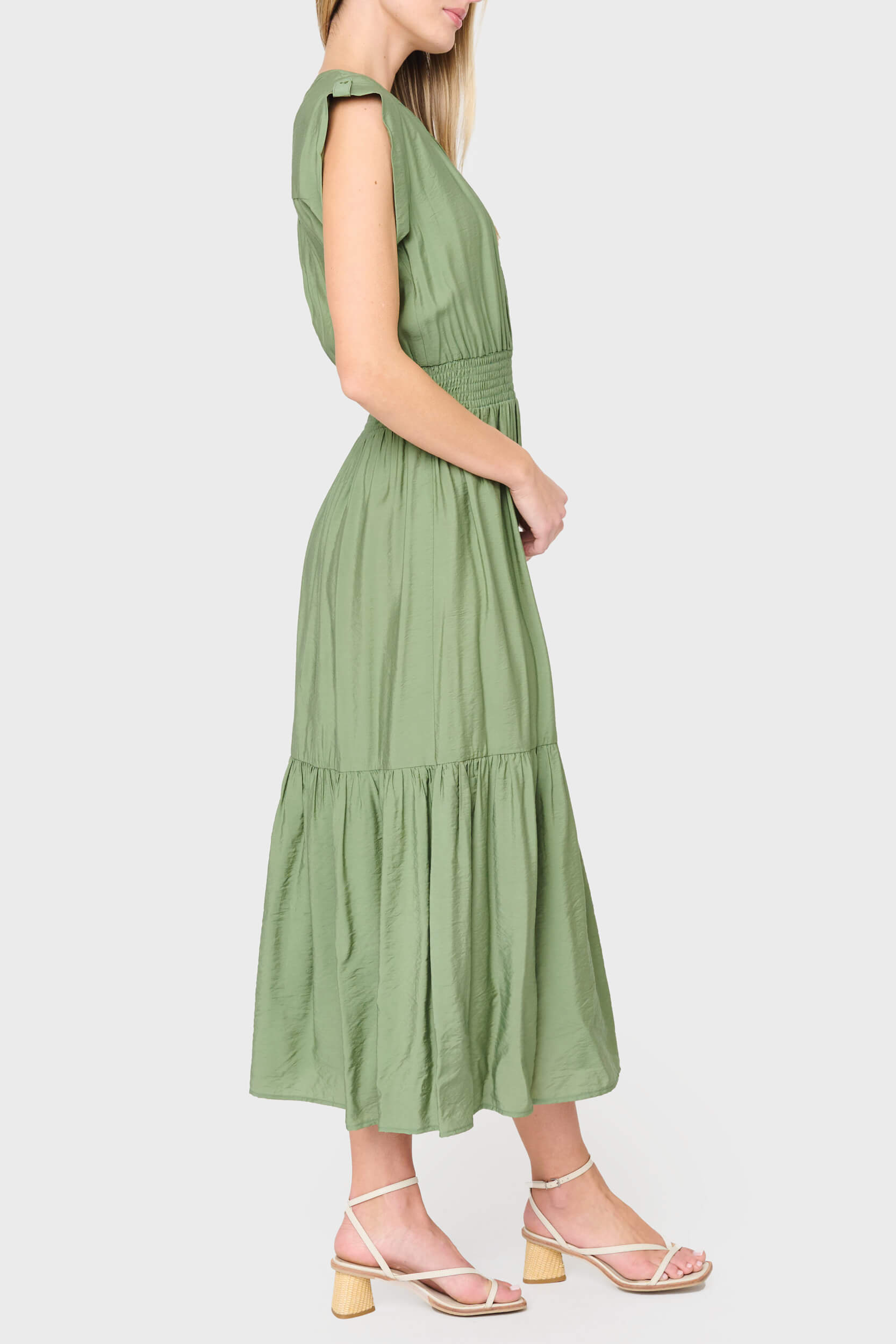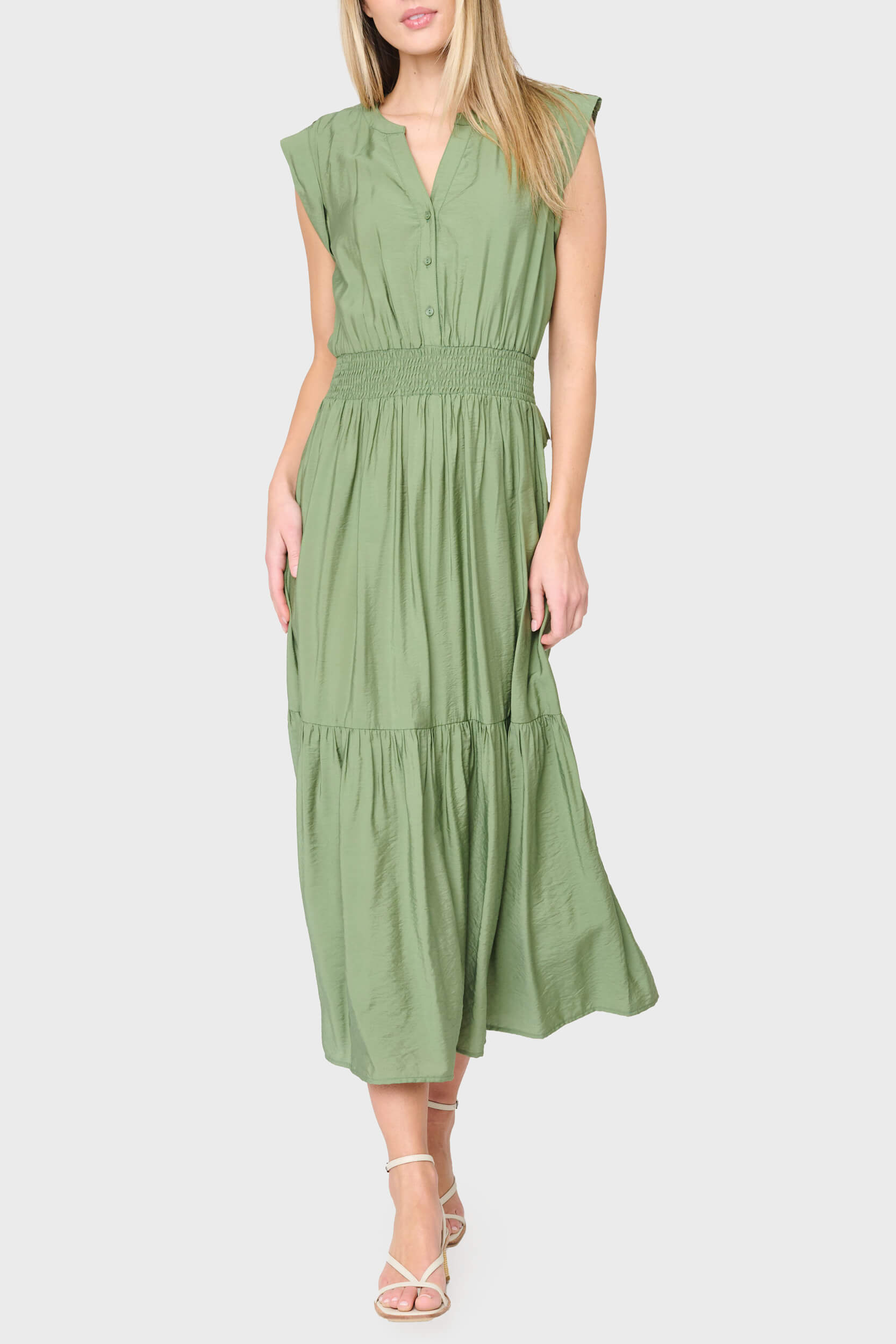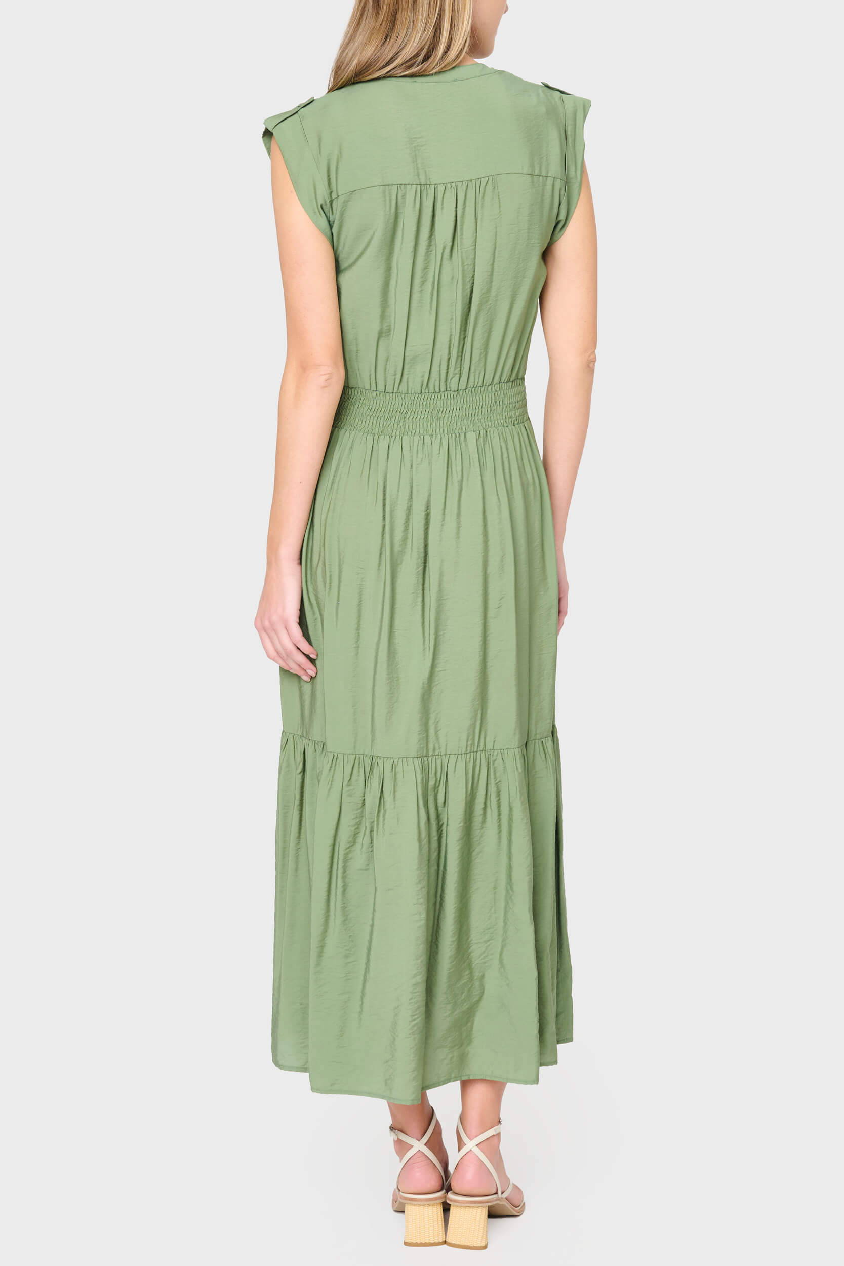 Embrace breezy, boho-inspired style with the Lindsey Utility Maxi Dress. Crafted from airy woven fabric, this flowy maxi dress features a button-front design and a smocked waist for a flattering, comfortable fit. The epaulette detail sleeves add a touch of interest, making it perfect for warm-weather days, vacations, and casual outings.