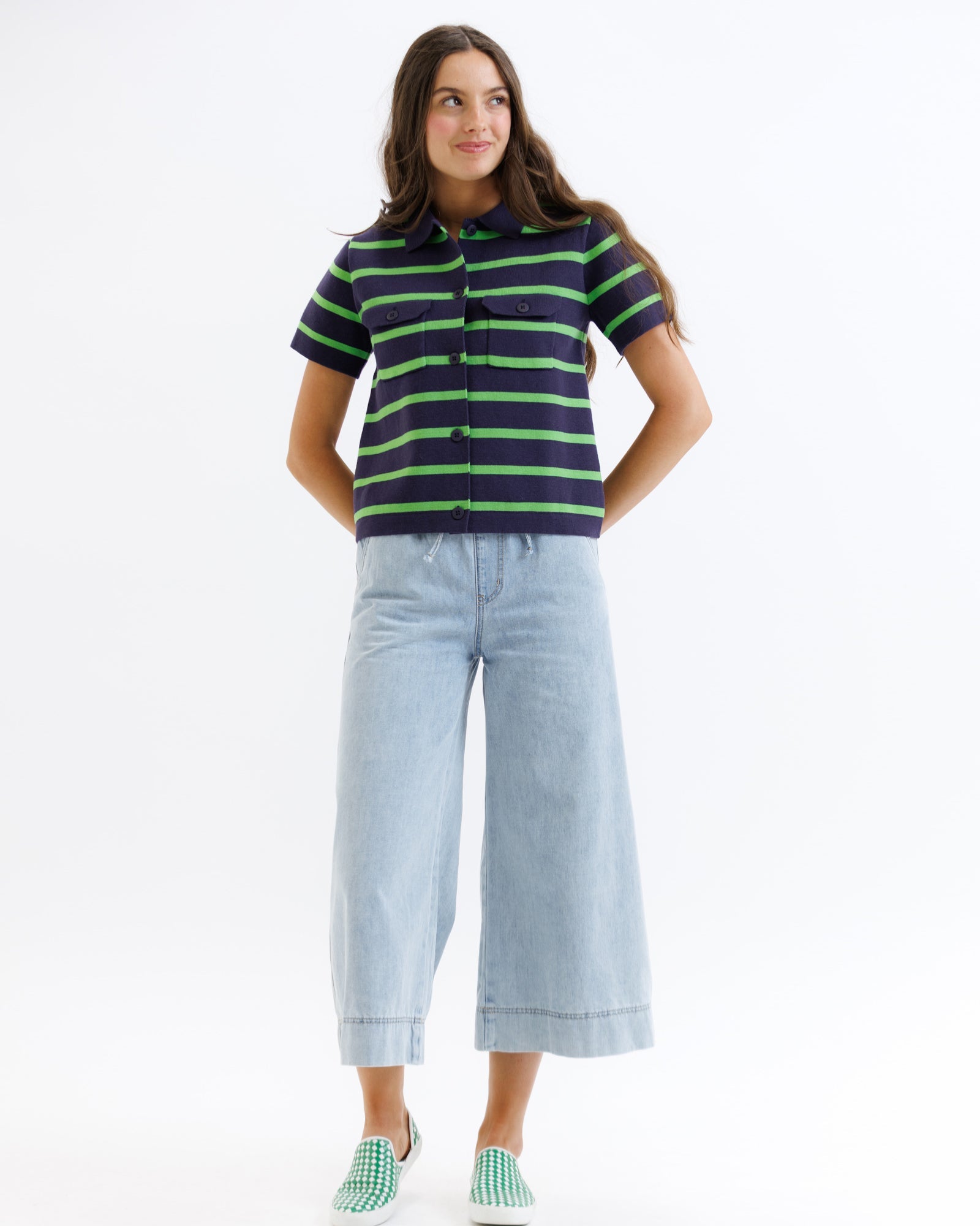 This charming button-down cardigan features a collared neckline and short sleeves that make it super cute layered over your favorite nursing tank. The front patch pockets with flaps add a sweet, practical touch to this versatile piece. Crafted from a soft cotton-blend that's gentle on your skin and baby's, this cardigan is machine washable for effortless care.
