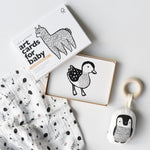 The Little Naturalist Gift Set for newborns features some of our most popular toys and is sure to bring giggles and smiles from your little loved one! We have paired our Organic Penguin Teether, our top selling Art Cards and our Organic Cotton Muslin Swaddle. These high-contrast toys are designed to stimulate baby's senses and to elicit joy and wonder. They are developmentally appropriate from birth to eighteen months, so they will grow with baby.