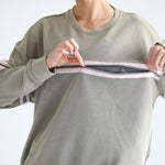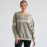 This long-sleeve pullover is designed with a sporty slouchy silhouette, offering an oversized fit that is both flattering and cozy. Crafted from soft, high-quality fabric, it features ribbed trim and chic striped detailing that adds a touch of classic elegance to your casual wardrobe.