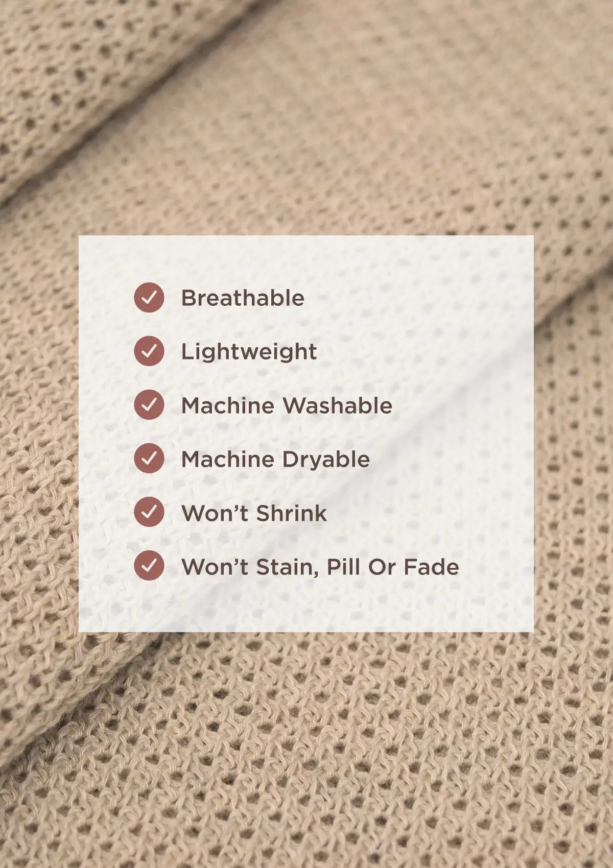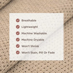 - Pre-washed yarn to resist pilling, shrinking, or warping after washing