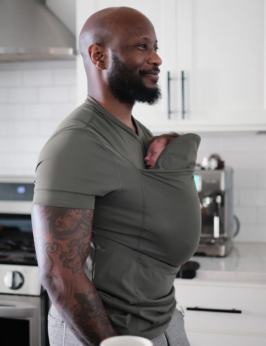 Made for dads who want to keep babywearing simple. Bonding made easy, no complicated wrapping or buckling here. Just put on your shirt, tuck your new babe into the front pouch, and feel both freedom and closeness. No more cramped arms, tired back, or worry. Keep ‘doing you’ and give your wifey that much needed break. Made with premium breathable fabric, tailored to fit close and keep your babe safe. The supportive infant pouch extender grows with baby and can be secured with sewn-in magnets when not in use. Can be worn as a shirt once baby grows out of it.