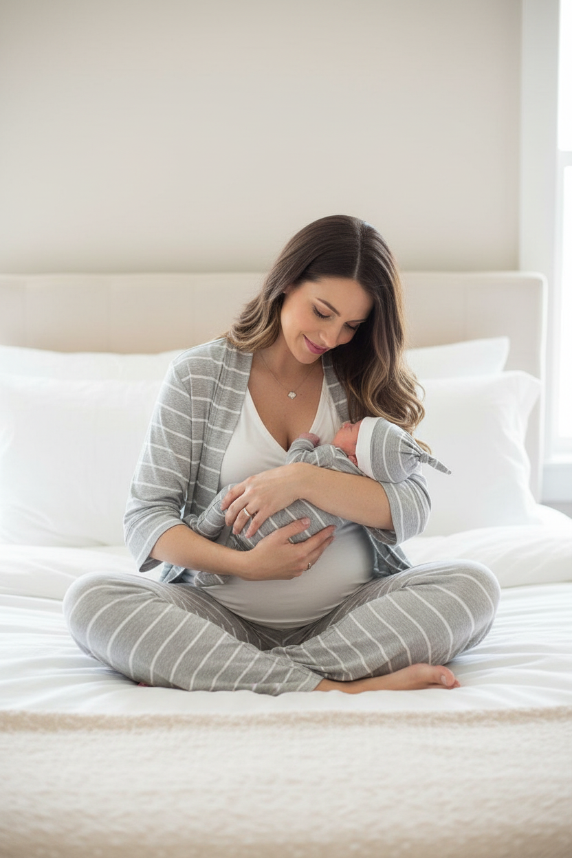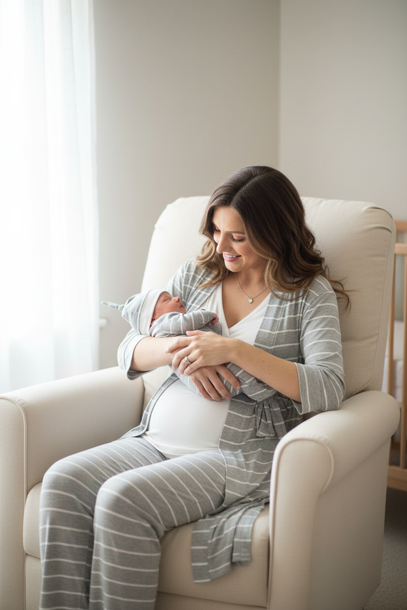 Why buy everything separately? The Analise 5-Piece Set is the ultimate "Hospital Bag in a Bag" solution. This coordinated collection ensures you look put-together for visitors and photos while staying ultra-comfortable during recovery.