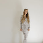 Everyone's favorite bamboo women's pajamas, featuring a long-sleeve top with three buttons and a slight flared pant. Be sure to look at our matching baby and toddler pajamas in this charming print! *These pajamas feature snaps down the front for easy accessibility for breastfeeding moms and elastic waistbands ensure max comfortability*