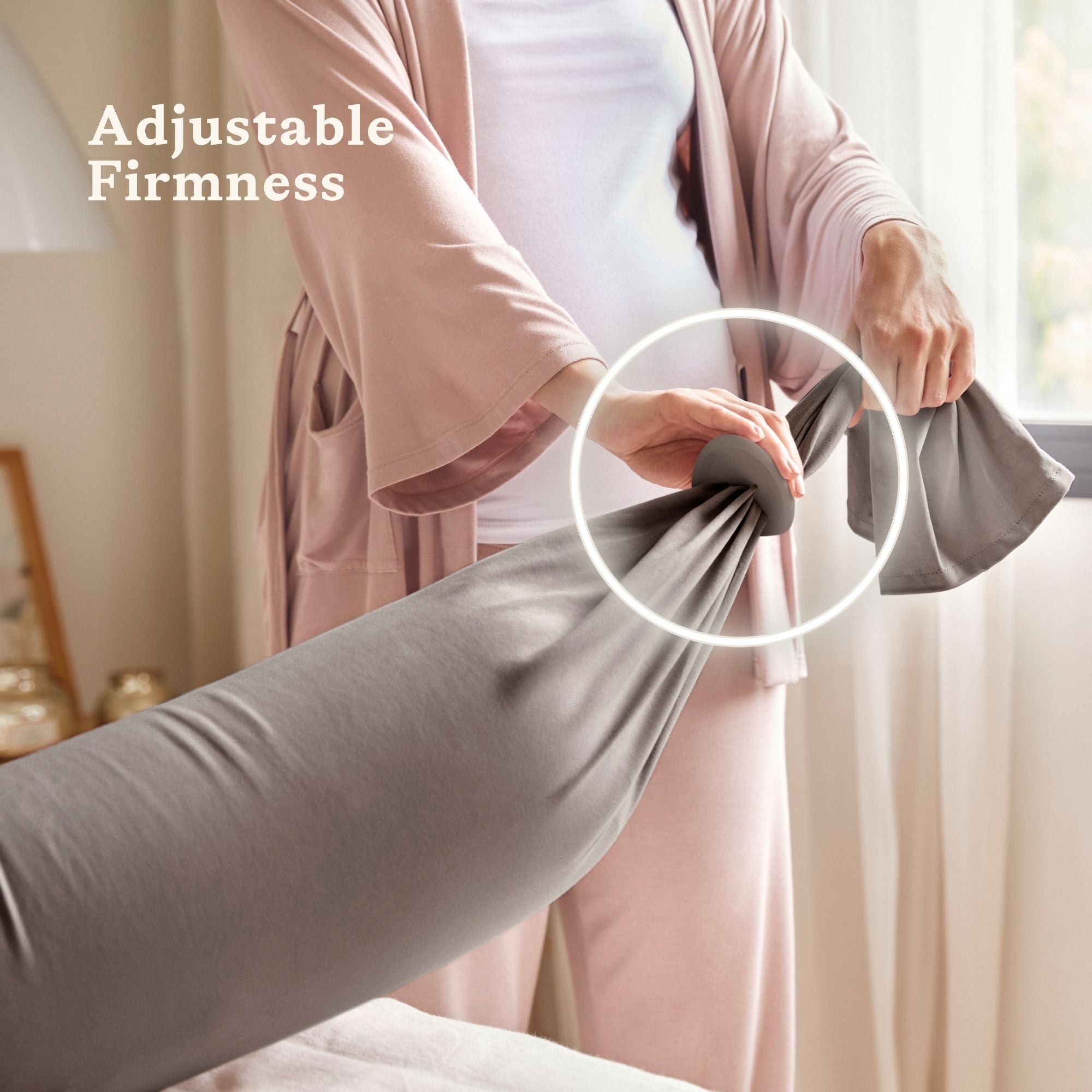 Adjustable firmness: Adjust the pillow to the level of support that’s right for you. Can be made firmer or softer as your body changes during pregnancy.
