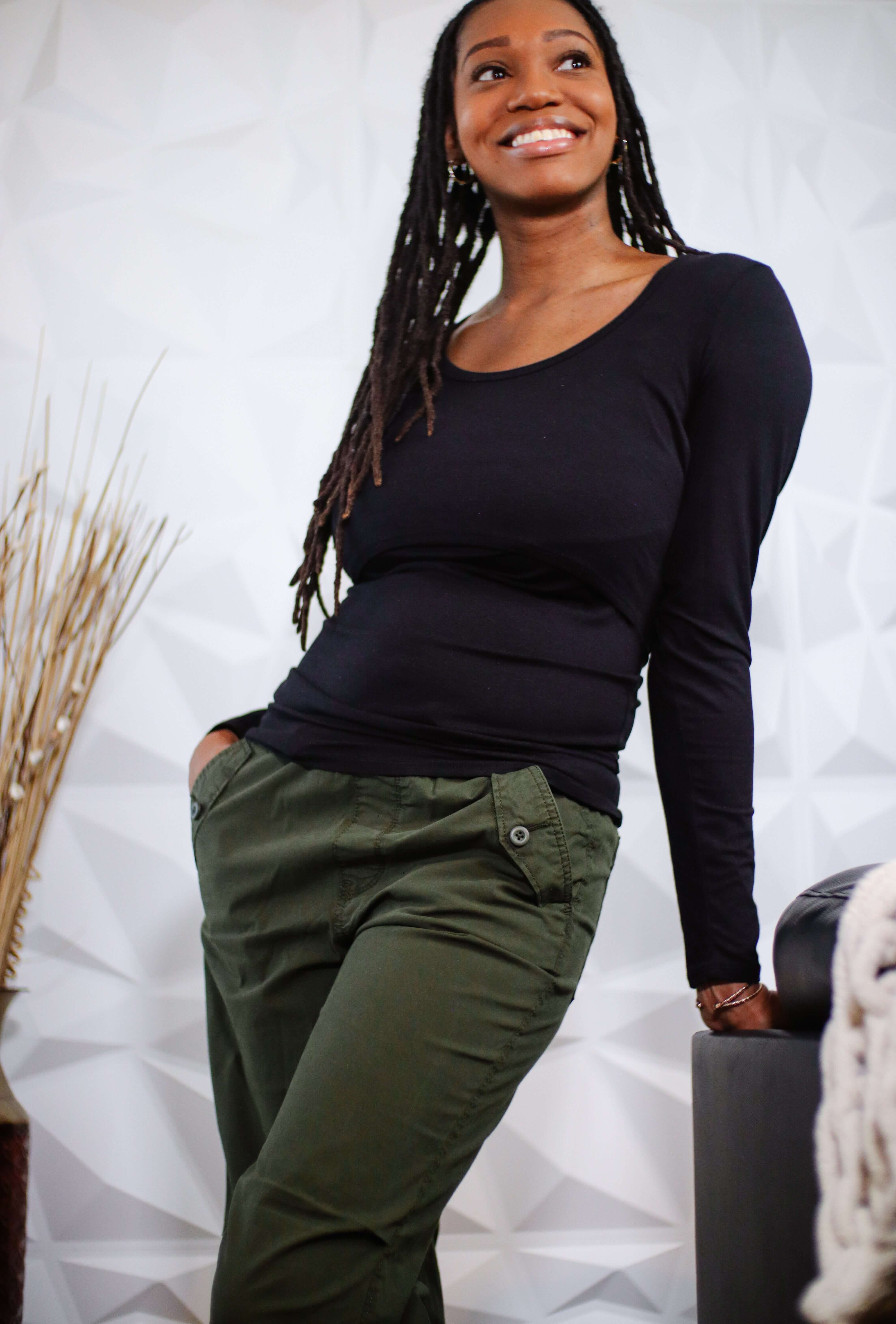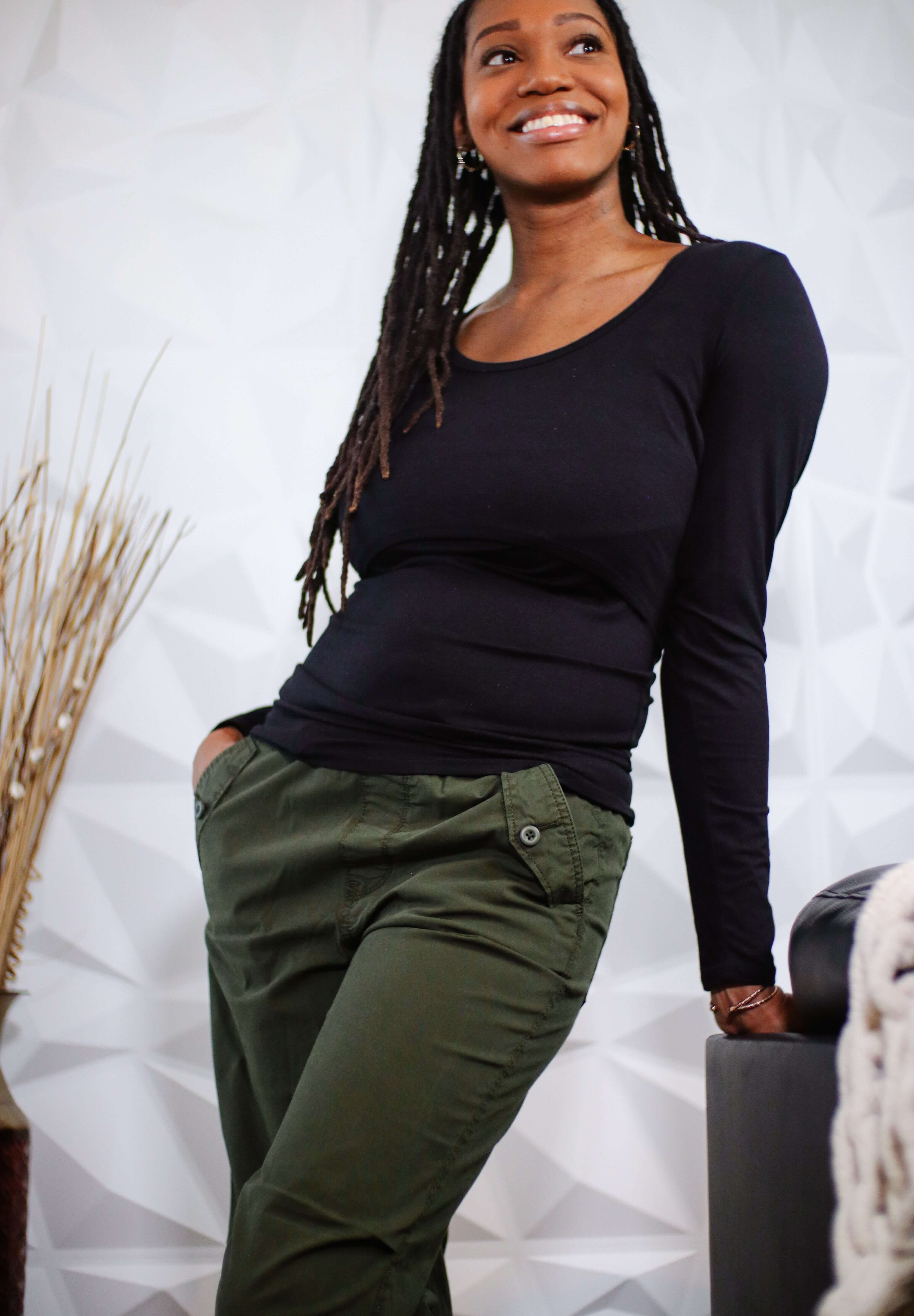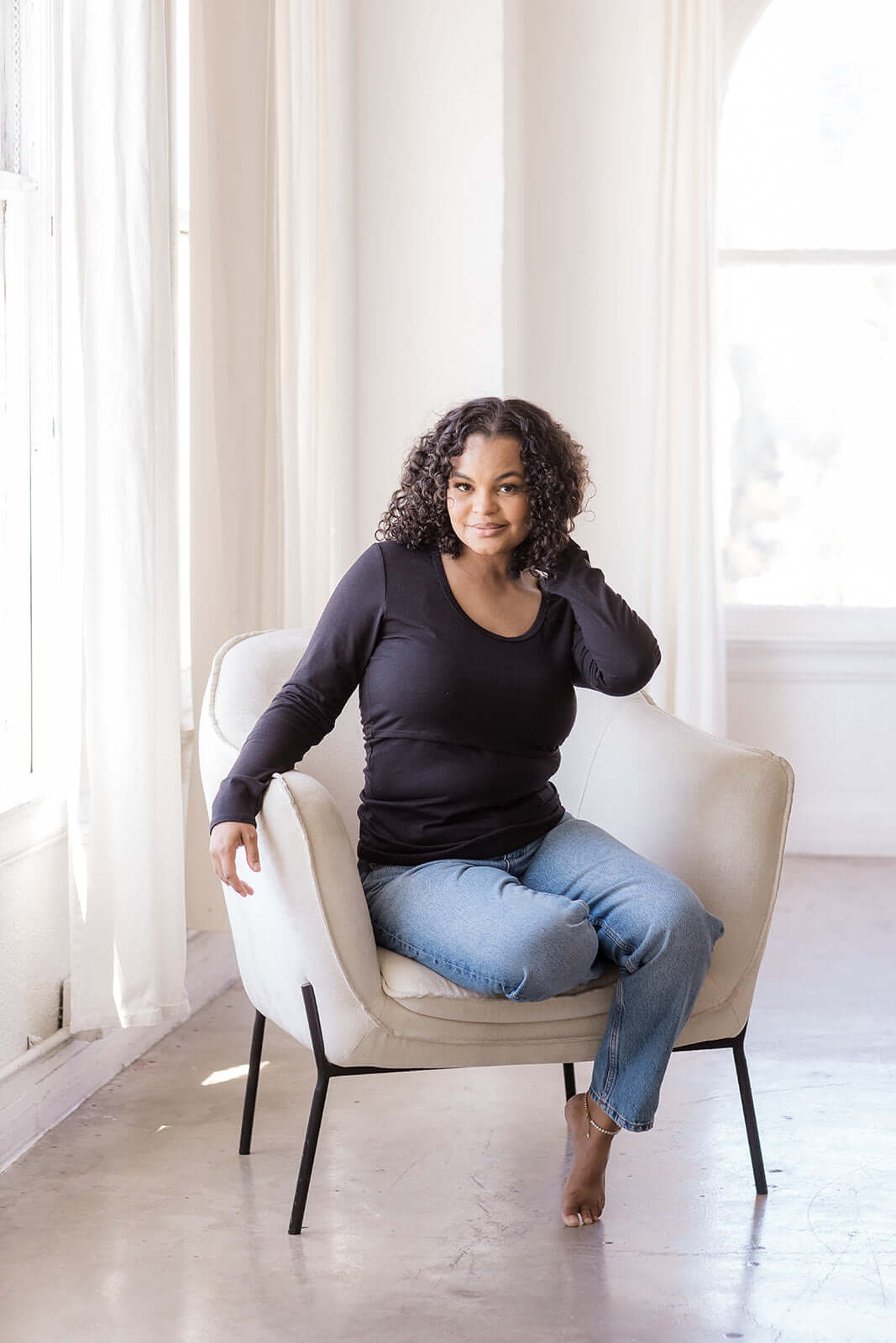 Made to empower moms to breastfeed anywhere in style and confidence, this classic yet elevated long-sleeve top will be your closet staple in those challenging early months (or years!) of motherhood. It’s beautifully designed and versatile — this beautiful top looks great with sweats or a blazer. Did we mention it’s also bump friendly?