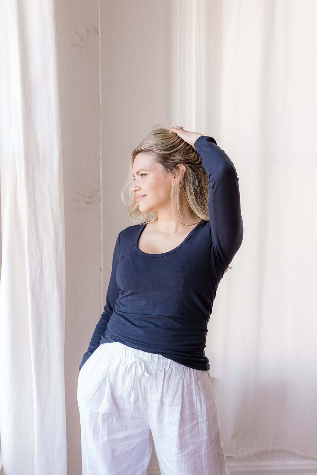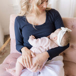 Made to empower moms to breastfeed anywhere in style and confidence, this classic yet elevated long-sleeve top will be your closet staple in those challenging early months (or years!) of motherhood. It’s beautifully designed and versatile — this beautiful top looks great with sweats or a blazer. Did we mention it’s also bump friendly?