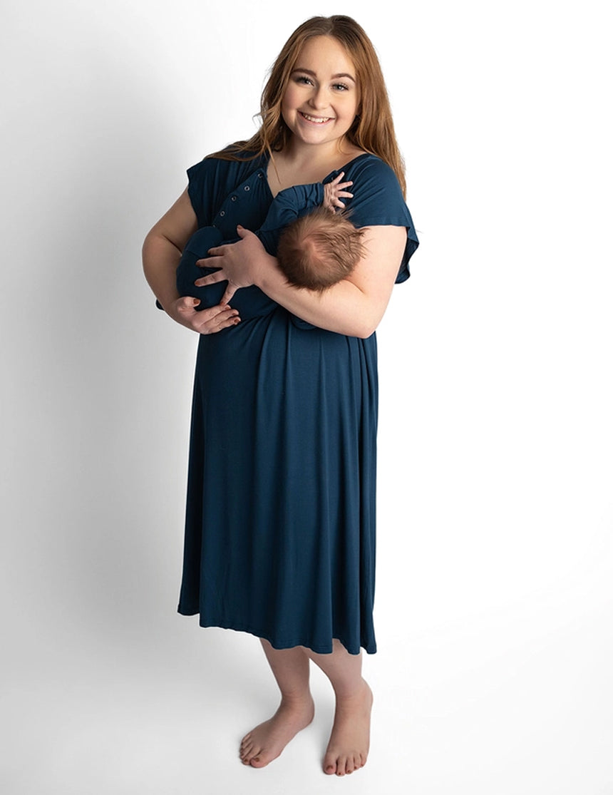 The perfect hospital gown for labor and delivery with all the functionality doctors and doulas recommend. Our gowns are stretchy, breathable and ultra-soft that will make you want to lounge in them pre and post-baby. The perfect alternative to those old hospital gowns. Designed with comfort and functionality in mind, these gowns feature easily open snaps for examinations, breastfeeding and skin-to-skin contact with you baby.