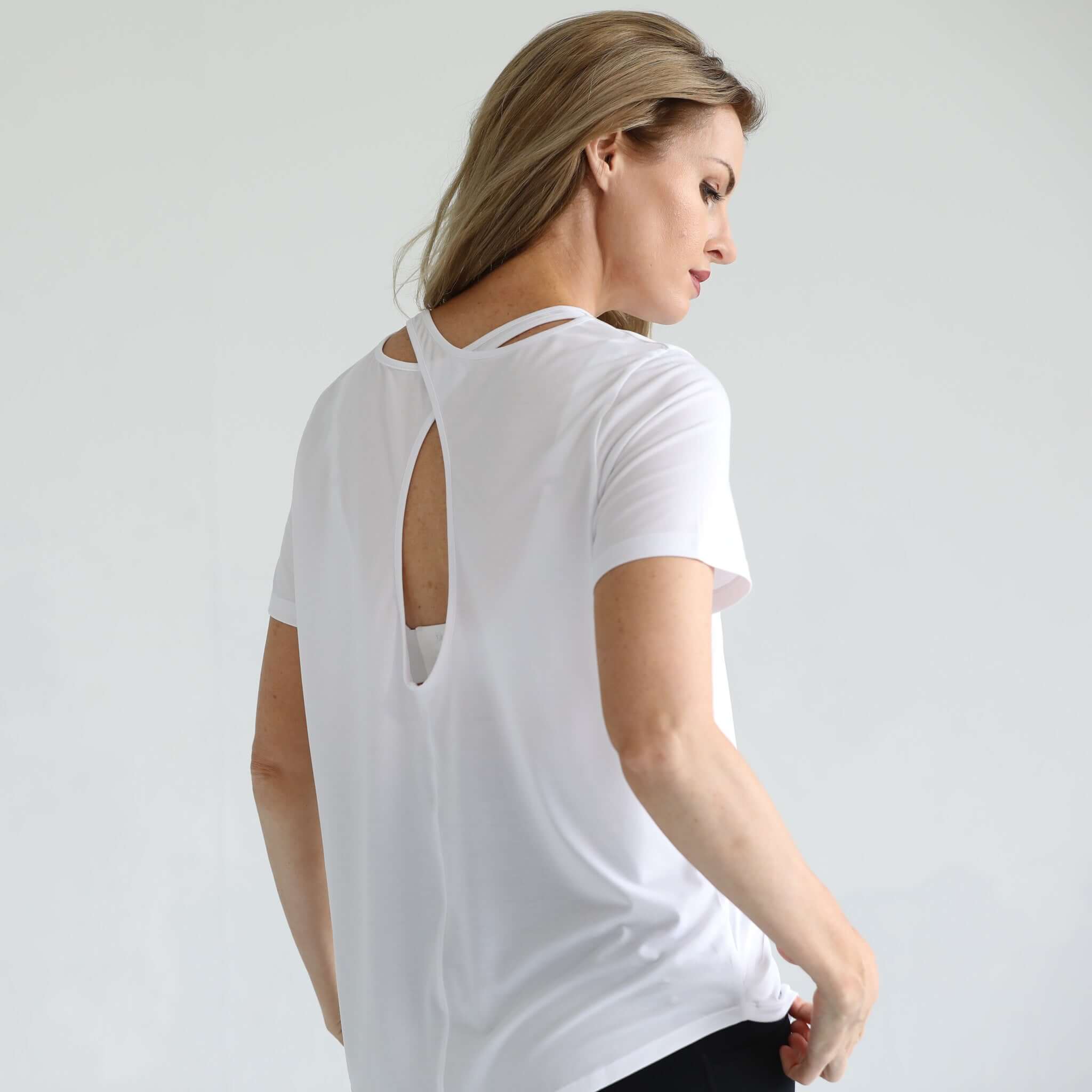 Harper Cross Back Short Sleeve Nursing Tee | Blanc | Milk & Baby