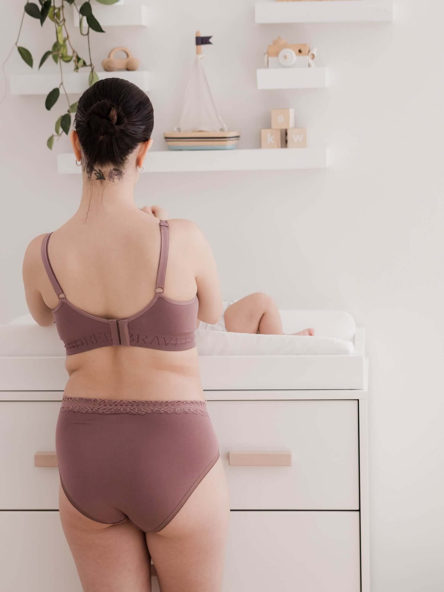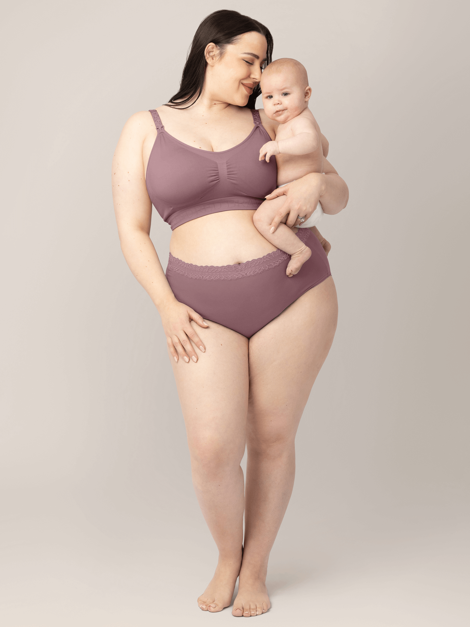 You won’t have to sacrifice comfort and style with these ultra-soft, high-waisted recovery panties - a must-pack for your hospital bag! This full-coverage underwear is made from ultra-stretchy fabric that sits above your hips (or C-section incision) and naturally conforms to your changing body. A perfect transition from your mesh hospital underwear, these postpartum panties offer plenty of room for pads, and the wide, lace waistband won't rub or dig in.