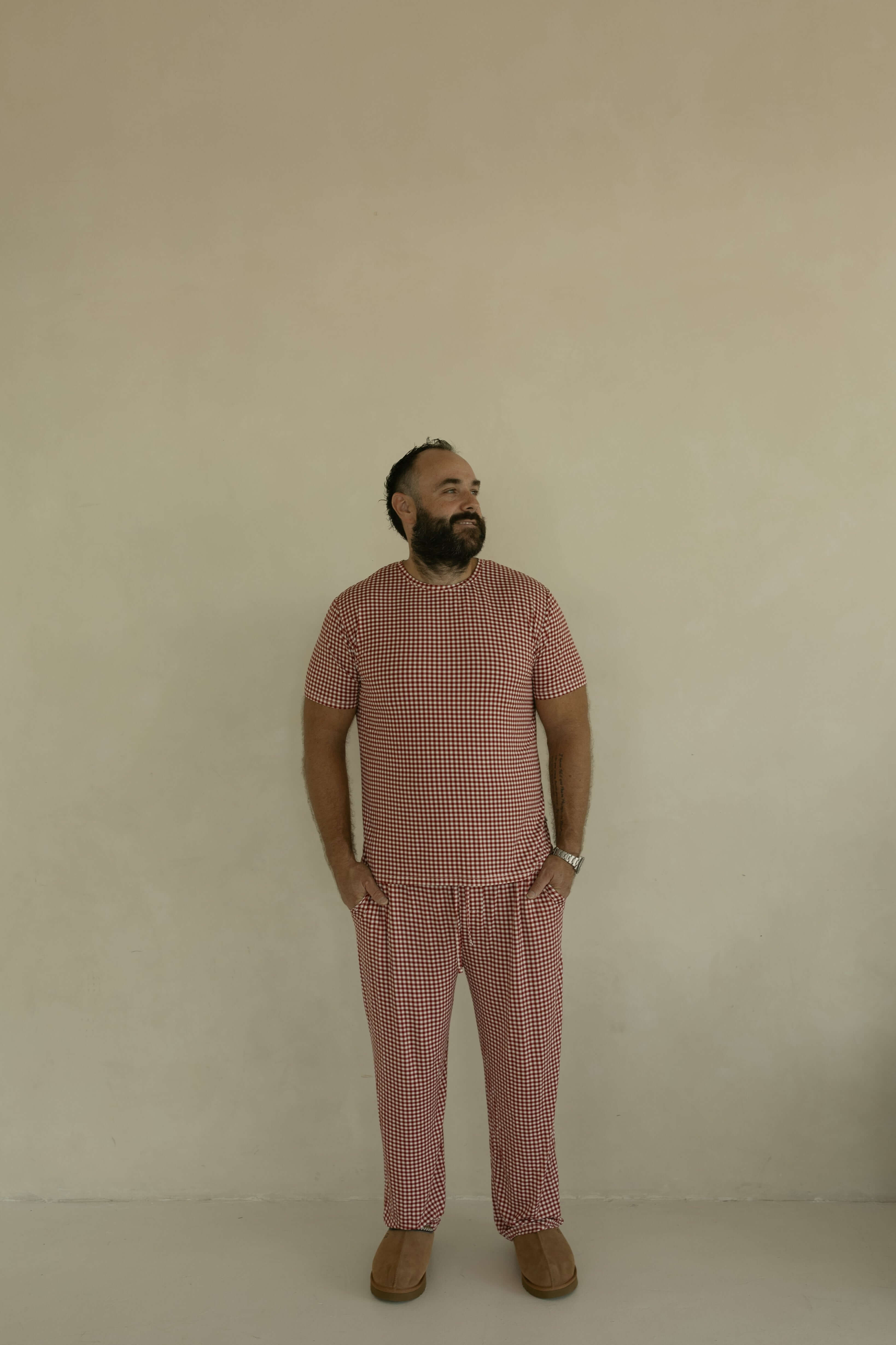 Red Gingham | Men's Short Sleeve Bamboo Pajamas