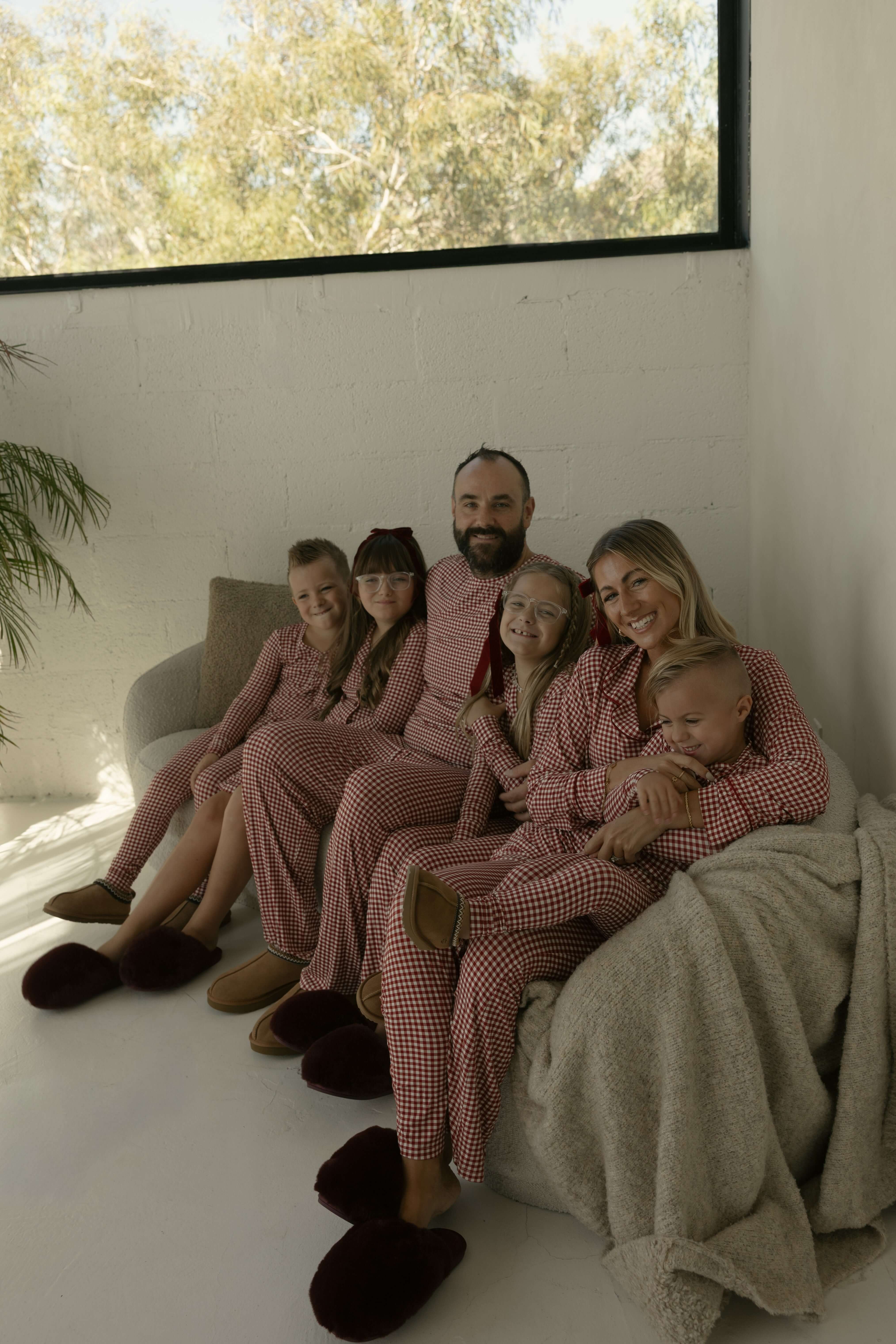 Men's Short Sleeve Bamboo Pajamas | Red Gingham | Milk & Baby