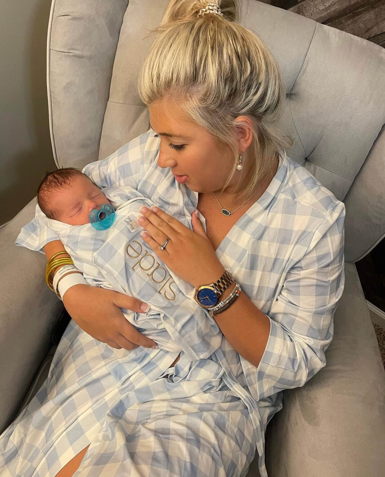 Save 10% off the robe when you add the matching Sunday Picnic, Dusty Blue Newborn Nest