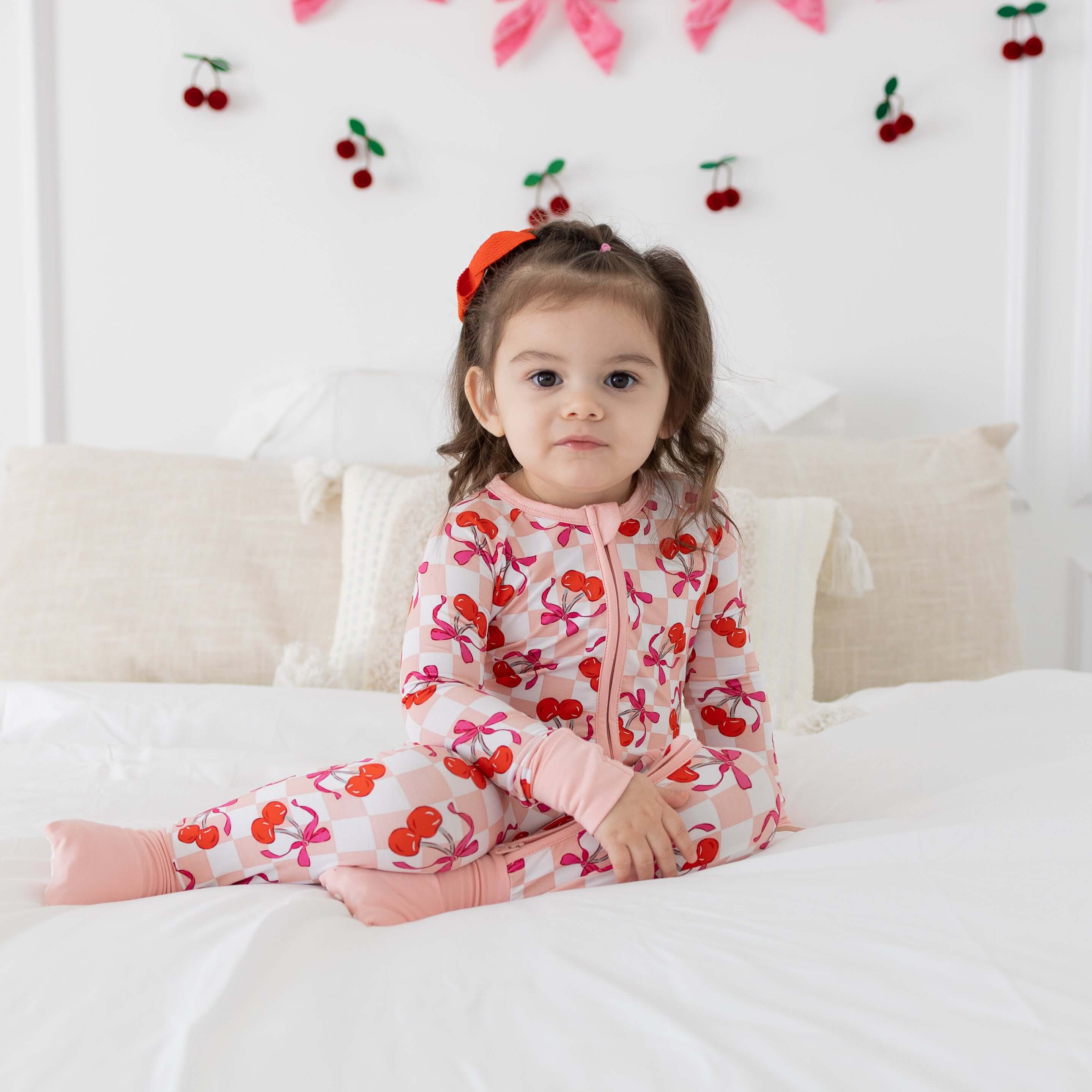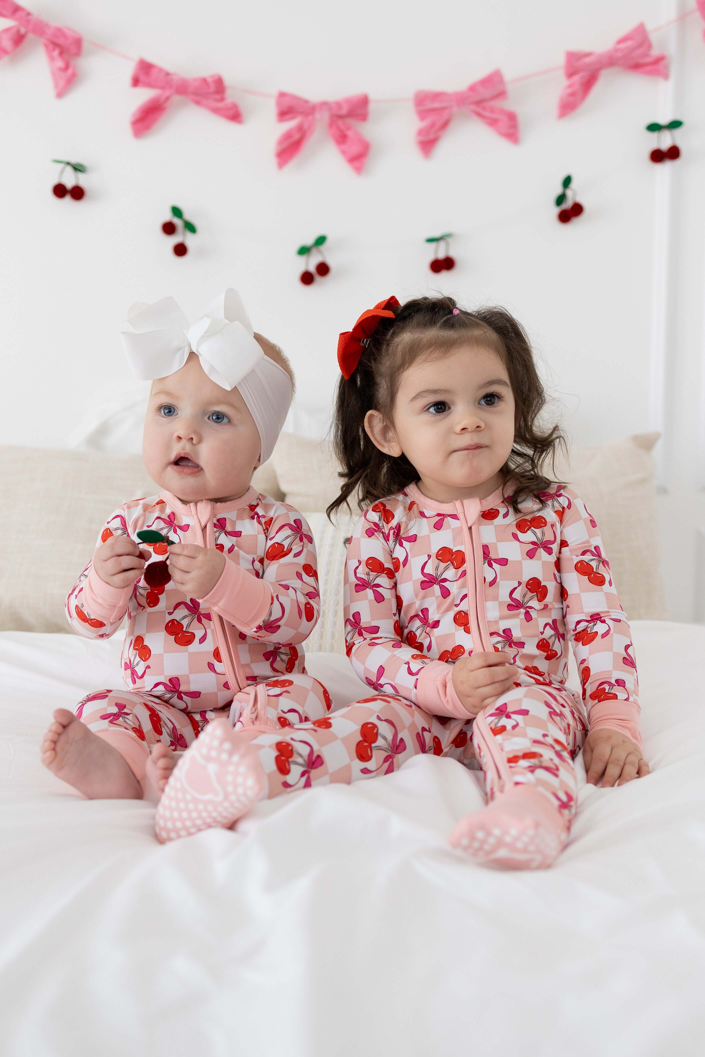 Sweet Cherry Love Romper is the sweetest way to dress your little love this Valentine’s season. Made from our signature buttery-soft bamboo lyocell, this pink checker romper features adorable cherries and bows for a playful, girly look moms adore. Designed with a smooth two-way zipper and breathable, stretchy fabric, it keeps babies cozy for sleep, play, and everything in between. Hypoallergenic, temperature-regulating, and gentle on sensitive skin, it’s the perfect blend of comfort, style, and lasting quality.
