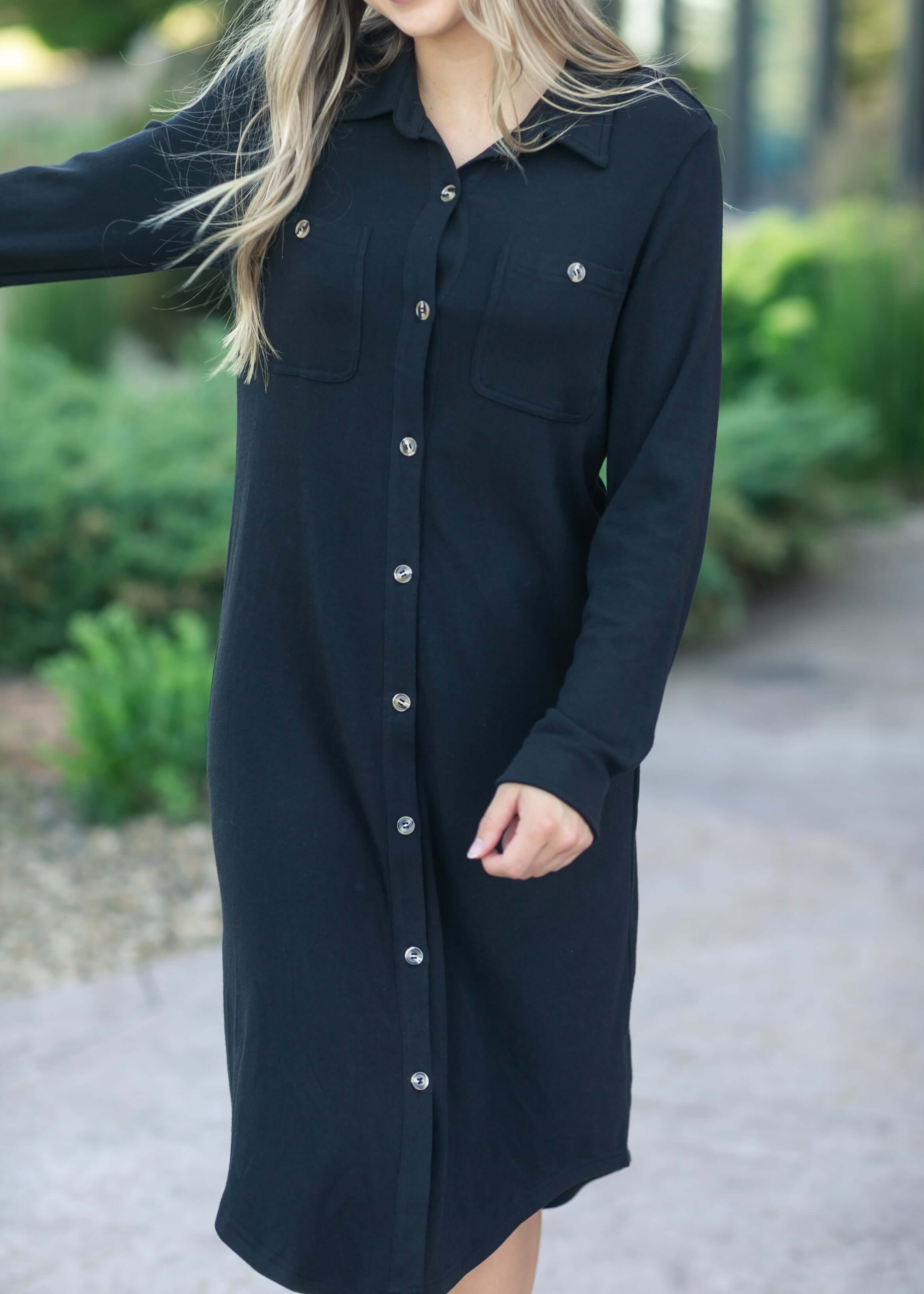 Meet your new go-to: the Teagan Ultra Soft Shirt Dress! Crafted from irresistibly soft knit, this charming button-down comes with a crisp collar, a handy chest pocket, and a curved hem that flatters at every angle. Its easy, relaxed fit and timeless style make it perfect for everything from chill daytime hangouts to effortless evening outings.
