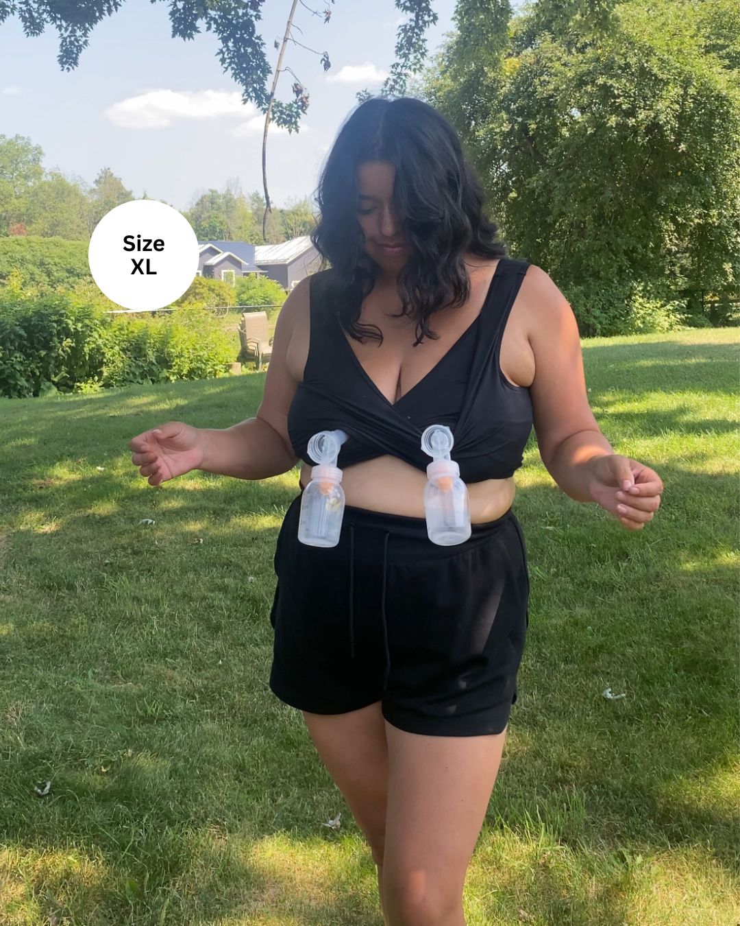 Meet Larkin's best seller that has sold out 6 times! The Larken X Bra is an all-in-one hands-free bra for pumping and nursing made with buttery smooth stretch fabric to adapt to your changing breast size. It's wire-free, made with relaxed support without being restrictive, and never has snaps, elastic, zippers or clips — easily making it the most comfortable nursing and pumping bra you'll wear. Plus, it's compatible with most major breast pumps! Machine washable and dryer friendly. Recommended by lactation consultants!
