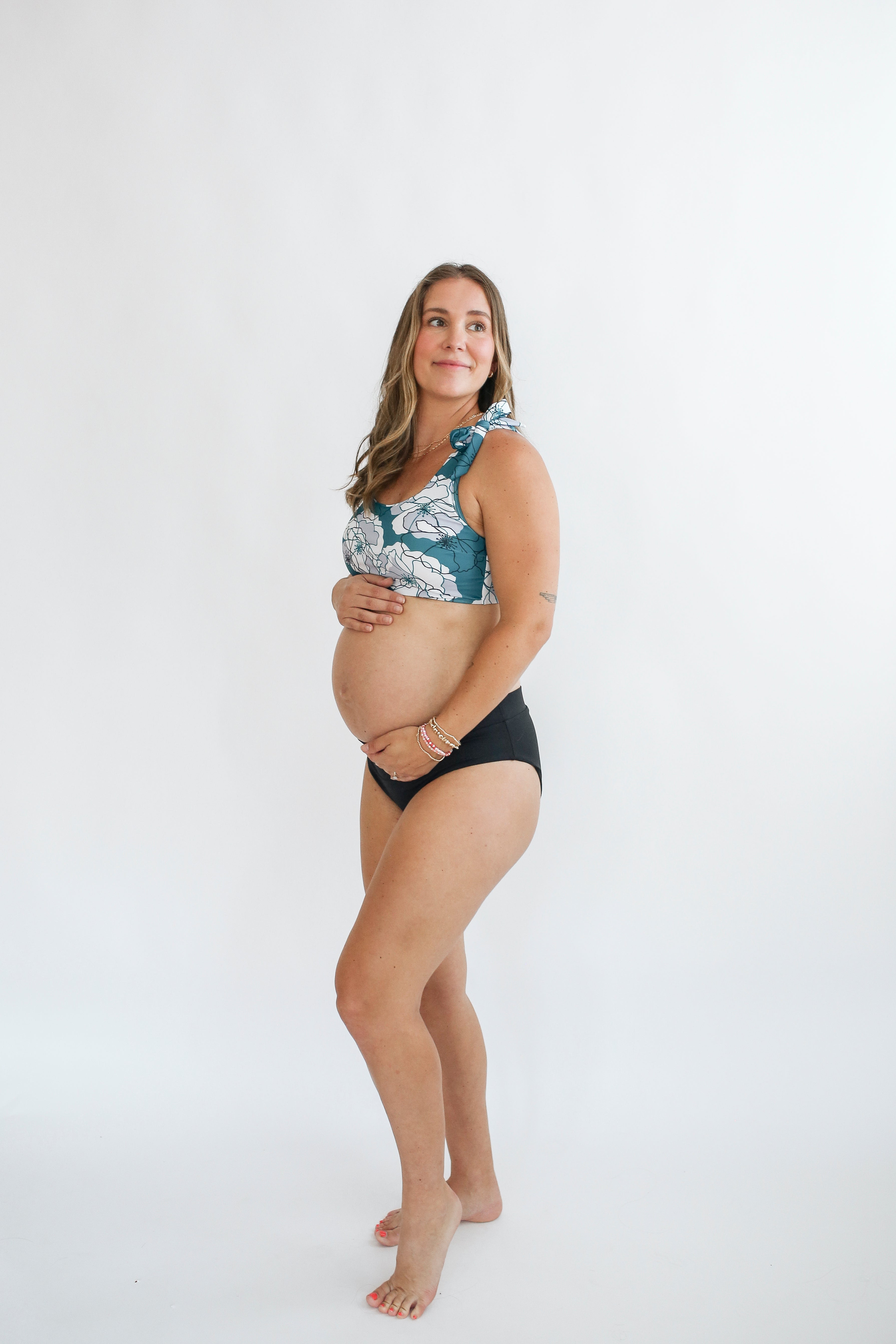 If your suit is worn during pregnancy and gets a little stretched out, one trip to the dryer will help it recover, but we do not recommend putting your suit in the dryer as a habit!